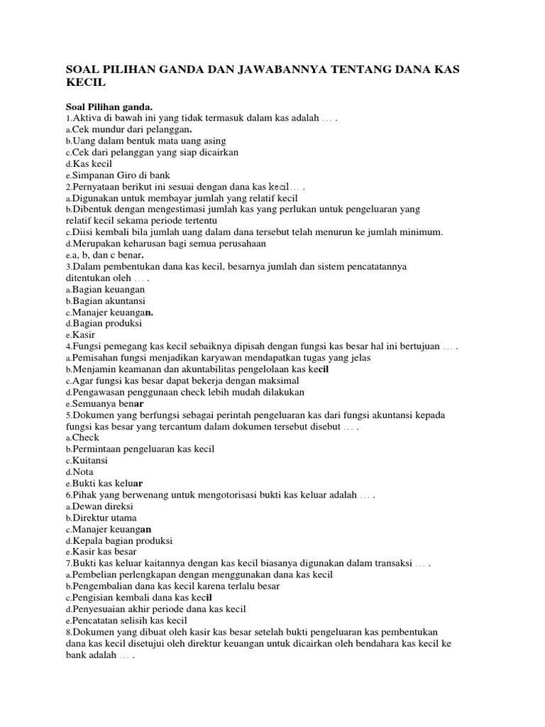 Contoh Soal Dan Jawaban Mengelola Kas Kecil Peranti Guru from guruakuntansi.co.id Check spelling or type a new query. We did not find results for: Maybe you would like to learn more about one of these?
