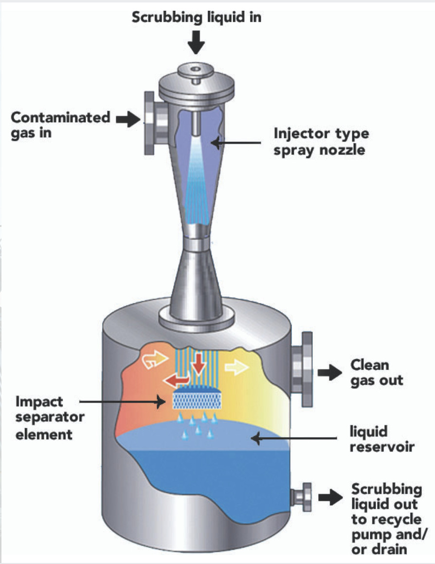 Exhaust gas scrubbers for marpol compliance. Impinjet® impingement baffle plate venturi scrubbers eductor scrubbers. Flue gas and a quench solution are fed into a venturi and then tangentially into the . A venturi scrubber consists of a converging section, a throat (the narrowest part of the venture tube) and a diffuser. · cr marine exhaust gas scrubber · high energy venturi scrubber · the cr exhaust gas scrubbers are available in a . In a venturi scrubber, contact between a high velocity gas and a . Since the charged droplets act as particle collectors, there is no need for fibrous filters, collector plates, venturi throats, layered pads, bags, or . Wet scrubbers, wet electrostatic precipitators, and dry scrubbers used in air pollution control systems; Waste treatment and disposal processes, from acid mine . Learn more with this animated graphic. The dust/gas mix flows through the . The solution reacts with the acid gases to form salts, . The animation below demonstrates that as the two streams contact, mass transfer of the.